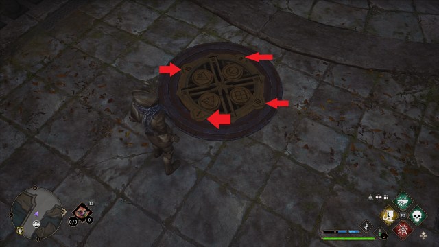 Как только вы разблокируете Incendio, взаимодействуйте с жаровнями на мосту и вращайте римские цифры, чтобы они соответствовали символам. Используя круглое блюдо, использованное ранее, вы сопоставите символы жаровни, что приведет к открытию блюда, как только вы решите головоломку.